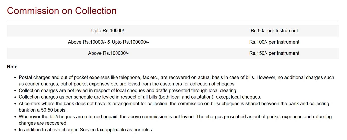 Inward & Outward Clearing Cheque Return Charges Rs.100/- Per Instrument